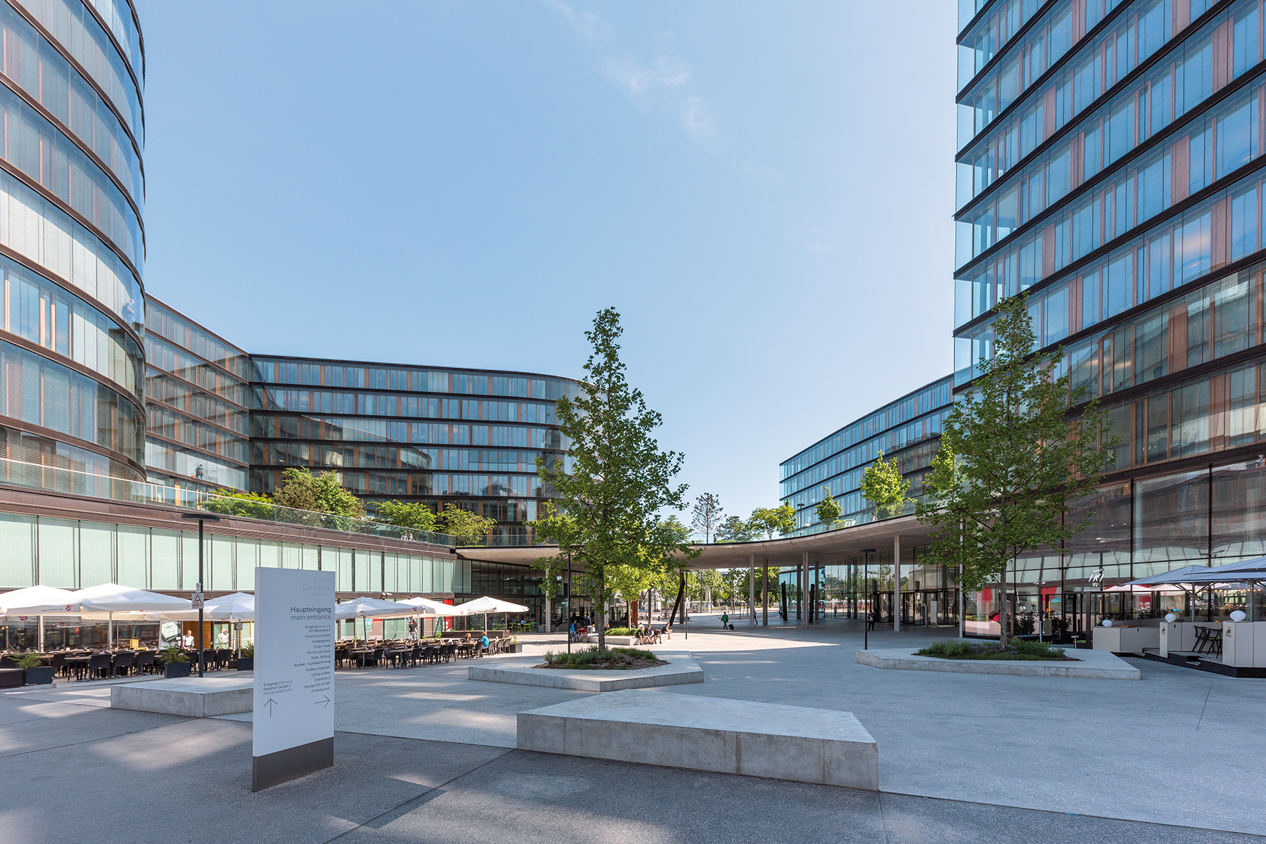 Koncepcia bola jasná už od začiatku – vytvoriť dôstojné a elegantné sídlo bankovej spoločnosti, ktoré bude však zároveň pôsobiť moderne ako sídla najúspešnejších „startupových“ firiem. Architekti Marta Schreieck a Dieter Henke nechceli skĺznuť ku klasickým návrhom fádnych administratívnych hranolov s pravouhlými pôdorysmi a monotónnymi kanceláriami. Celým komplexom sa teda ťahá snaha o organickosť a originálny dizajn. Finálny návrh preto pozostával z troch nepravidelne zakrivených objektov s átriom uprostred, pod ktorým sú v podzemí objekty prepojené. Riešenie má prepájať a vťahovať okolité mesto do vnútorného areálu, ale zároveň vizuálne rozširovať komplex do okolia.