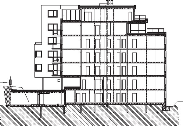 Zložitý pozemok „Každý developer a investor zvažuje najmä to, aby projekt, do ktorého investuje peniaze, bol pekný a ekonomicky výhodný,“ hovorí na úvod Peter Styk, majiteľ spoločnosti STYK Development RK, spol. s. r. o., developer a investor v jednej osobe. Dodáva, že práve preto sa po nadobudnutí pozemku zamýšľal nad jeho najefektívnejším využitím. Pozemok, na ktorom rezidencia stojí, má pomerne komplikovaný pôdorys – architekti museli projekt bytového domu zapracovať do kaskádovitého terénu. Problémy pri polohovaní domu spôsobil aj susedný objekt. Svojou kolmou orientáciou potrápil architektov, zároveň však stavbu nepriamo obohatil. „Dom na južnej strane pozemku sa úplne vymyká celému konceptu štvrte,“ hovorí architekt Ján Polášek, jeden z autorskej dvojice architektonického ateliéru Atlas. „Je to bariérový objekt, ktorý nemá nič spoločné s uličnou čiarou a narúša ohýbajúcu sa líniu zástavby, ktorú Kaskády chceli sledovať. Museli sme preto vymyslieť elegantné, no zároveň funkčné riešenie ukončenia bytového domu,“ opisuje architekt okolnosti a ukazuje pritom na atypické ukončenie budovy.