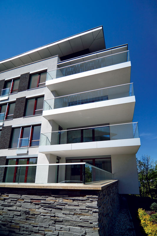 Uprostred mesta, a pritom v prírodnom prostredí. Takto na nás pôsobil komplex obytných budov nazvaný Mestské vily. Zámerom stavebníka bolo vytvoriť kvalitné bývanie na úrovni rodinných domov, ale so službami ako v bytovom dome (správa technologických zariadení, údržba sadových úprav, strážna služba v areáli a podobne). Ideálna kombinácia pre ľudí, ktorí túžia mať veľkorysé bývanie, ale nemajú čas a chuť riešiť množstvo detailov pri stavbe a následne zabezpečovať chod domu od vykurovania až po odhadzovanie snehu spred garáže. Stavba sa nachádza v kopcovitom teréne. Skalné podložie striedajúce sa s menej pevnými časťami kládlo nároky na zakladanie z pohľadu zabezpečenia rovnomerného sadania. Preto projektanti zvolili roštové základy podopreté miestami šachtovými piliermi. Horná stavba je riešená tradičnými systémami – železobetónové stropy a pilierové steny, murovaná tehlová výplň. Fasáda je zaujímavá svojou členitosťou, ale aj kombináciou rôznych materiálov. Nás zaujal hlavne tehličkový obklad. Podľa slov investora je z rezaných tehál. Pre svoju hmotnosť je obklad fixovaný na oceľovú mriežku kotvenú cez tepelnú izoláciu do obvodového muriva. Toto je technológia, ktorá si vyžaduje precíznosť a dodržiavanie technologickej disciplíny, aby systém dobre odolával poveternostným vplyvom. V záujme predísť problémom investor zveril túto časť prác renomovanej firme, ktorú mal overenú z iného svojho projektu. Zdá sa ale, že pri voľbe dodávateľa kontaktného zatepľovacieho systému už nemal až takú šťastnú ruku. Na niektorých miestach fasády sú viditeľné praskliny (obr.). Komfort bývania je vytvorený architektonickým riešením a použitím materiálov na vysokej úrovni, ale aj systémovými riešeniami technológií. Každý dom má svoju vlastnú kotolňu a každý byt vlastnú odovzdávaciu stanicu tepla. Byty sú vybavené podlahovými konvektormi v kombinácii s parapetnými konvektormi. V letnom období možno každý byt pripojiť na centrálny chladiaci systém. Byty sú vybavené optickou telekomunikačnou prípojkou. K celkovej pohode bývania prispeje aj kultivované prostredie vytvorené sadovými úpravami, o ktoré sa stará profesionálny záhradník.             Ing. Marián Kaššák Autor pracuje ako stavebný a technický dozor najmä na veľkých projektoch bytových domov.  |