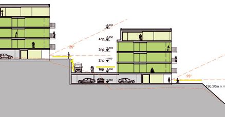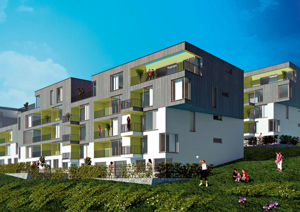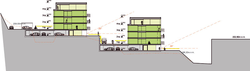 Architektonický koncept stavby vychádza zo schválenej urbanistickej štúdie Podhorský pás – Nové Mesto. „Kedysi sa v tejto časti nachádzali vinohrady – pozemok má svahovitý, terasovito usporiadaný charakter. Pri návrhu sme využili logické usporiadanie pôvodného terénu, do ktorého sa v smere vrstevníc vložili dva malopodlažné bytové domy,“ hovorí spoluautor projektu Ing. arch. Juraj Hantabal.