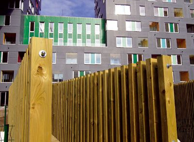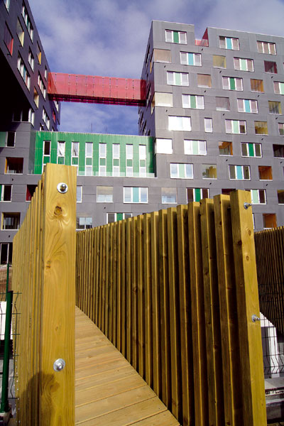 Vnútrobloková záhrada v prvom rade slúži obyvateľom domu, je však takým zaujímavým prvkom konceptu, že sa ju architekti rozhodli vizuálne prepojiť aj s okolím objektu. Záhrada s jej zeleňou je vďaka spomínaným dvom otvorom prístupná aj pohľadom okoloidúcich. Prvkom, ktorý okoloidúcim naznačuje záhradu vo vnútri komplexu, je aj „zelená kocka“, hmota obrastená brečtanom, ktorá je vysunutá pred fasádu do priestoru Záhradníckej ulice. Kocka nesie v úrovni siedmeho nadzemného podlažia trojicu stromov a je akousi citáciou vnútornej záhrady na vonkajšej fasáde. Okná a lodžie na fasádach sa po podlažiach rytmicky posúvajú, čím sa zvýrazňuje kompaktnosť hranolovej kompozície. Šedú fasádu s cembonitovým obkladom odľahčuje zasklená fasáda na spodných podlažiach a oživuje ju farebnosť lodžií na nárožiach, ako aj zasklené mostíky spájajúce hmoty bytového komplexu v miestach, kde sa hmota prerušuje.