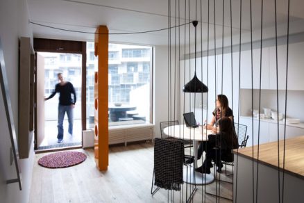 Namiesto toho, aby sa zóny domu s odlišnými funkciami – bývanie a obchod – rozdelili do blokov, architekti ich rozptýlili horizontálne.