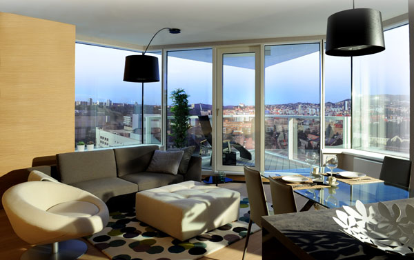 Čo serióznych záujemcov o byt okrem ceny zaujíma aj tak najviac, je samotná dispozícia bytov. Vzorové byty veľmi vkusne zariadila skúsená interiérová dizajnérka Zuzana Cambelová. Vlastný byt si zariadite, samozrejme, podľa svojho gusta, ale práve minimum nábytku s elegantnými doplnkami záujemcov nevtieravo navádza na smer, ktorý by si mali pri zariadení vybrať. Ako zdôrazňuje aj dizajnérka, pri zariaďovaní bytov sa priam žiada nezahltiť ich nábytkom, ponechať im vzdušnosť.