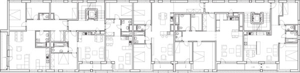 Hlavné stavebné objekty budú situované kolmo na stavebnú čiaru, spájať ich bude jednopodlažná podnož s ustúpenou fasádou oproti rímse. Vytvorí sa tak predpolie pre peších s komerčnými prevádzkami. Päťpodlažné domy (pôvodne ich bolo v projekte na stavebné povolenie sedem, ale aj tu platí, že menej je niekedy viac) sú optimálne priestorovo a rytmicky rozložené, vzniknuté komforné vnútrobloky vytvoria poloverejný priestor so zeleňou. Bonusom takéhoto usporiadania je východo-západná orientácia bytov. V prvej etape ich bude 90. Jedno- a dvojizbové budú orientované na jednu alebo dve svetové strany, troj- a štvorizbové na dve až tri svetové strany.