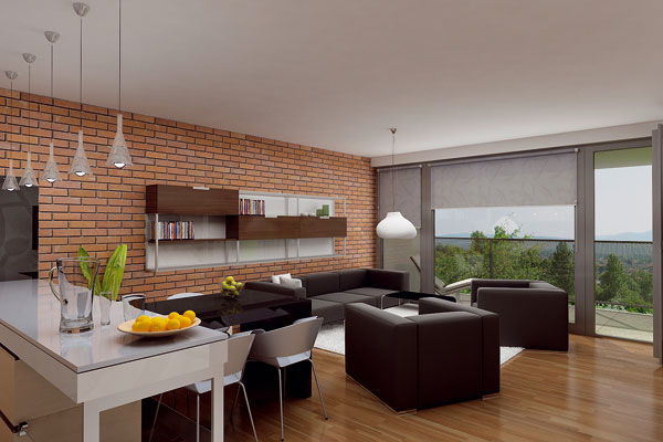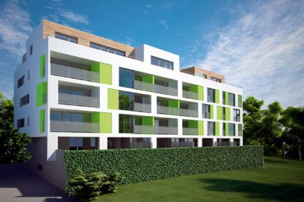 Motív vizuálneho prepojenia objektu s okolím sa odráža v dispozičnej a architektonickej koncepcii, a to využitím veľkoplošného zasklenia juhozápadnej časti stavby. Svetlo a vizuálne prepojenie s okolím je prítomné v každej bytovej jednotke. Dizajn severnej a východnej fasády má o niečo striedmejší charakter. Istým spôsobom v sebe odráža prítomnosť uzavretejších častí dispozície bytov. Fasádu tvoria klasické omietky bielej a akcentujúcej žiarivo zelenej farby v kombinácii s cembonitovým obkladom na poslednom, ustúpenom podlaží.
