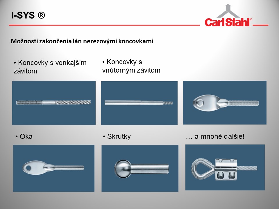 – antikorové/nerezové laná I-SYS® z vysokokvalitných antikorových oceľových lán triedy materiálu 1.4401