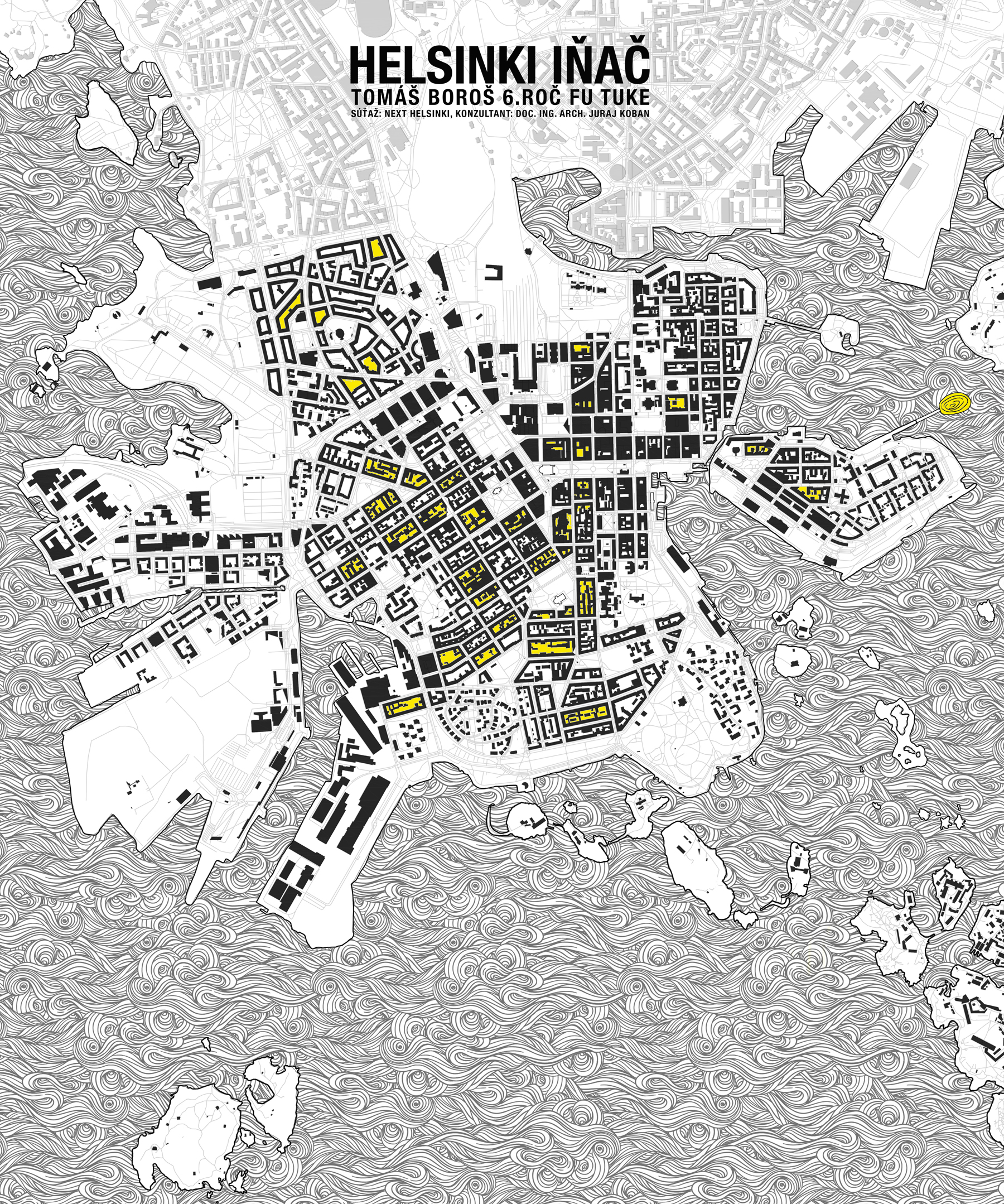 Zadaním bola výzva umeleckej komunity v meste Helsinki na predkladanie návrhov podporujúcich lokálnu kultúru ako kontra iniciatíva popri veľkej architektonickej súťaži na Guggenheimovo múzeum. Autor využil toto zadanie na zamyslenie sa nad skutočným poslaním umenia ako takého, nad vzťahom umelca, umenia a spoločnosti. Hoci sú jednotlivé predkladané návrhy takejto mestskej akupunktúry podané s veľkou dávkou abstrakcie, autor preukázal znalosť lokálnych špecifík riešeného územia, ktoré boli originálne a atraktívne zdokumentované formou kreslených máp a rôzne podrobných axonometrických pohľadov. Porota ocenila konzistentne vystavané libreto konceptu a bohatstvo podnetov, ktoré majú potenciál stať sa podkladom na ich detailnejšie rozpracovanie a implementáciu.