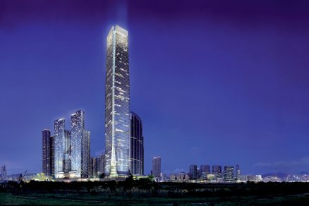 O päť miliárd dolárov viac ako do celého dubajského areálu – celkovo 25 – sa však investuje len do gigantickej podkovitej stavby kultúrnych inštitúcií, čiastočne na umelej pevnine v Západnom Kowloone pred Medzinárodným obchodným centrom (ICC) v Hongkongu (490 m, 2010). V súlade s trendom bude mať táto administratívna budova aj hotelovú časť, a to netradične na najvyšších poschodiach. Bráne do prístavu, najväčšej budove sedemmiliónového mesta, ktorú budú dokončovať etapovito od decembra tohto roku, dal klasickú podobu ateliér Kohn Pedersen Fox Associates – z dokončovaných supervysokých stavieb projektovali aj Šanghajské svetové finančné centrum (491 m, 2008).