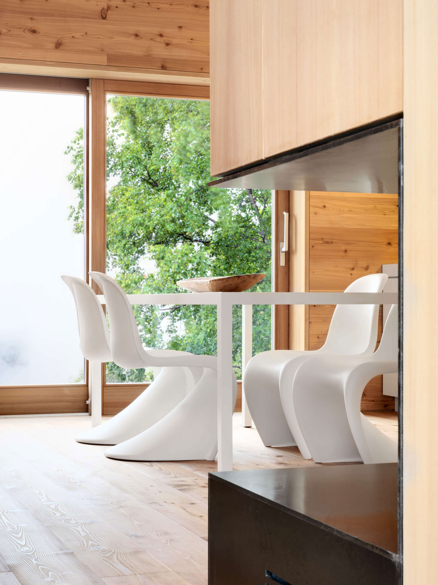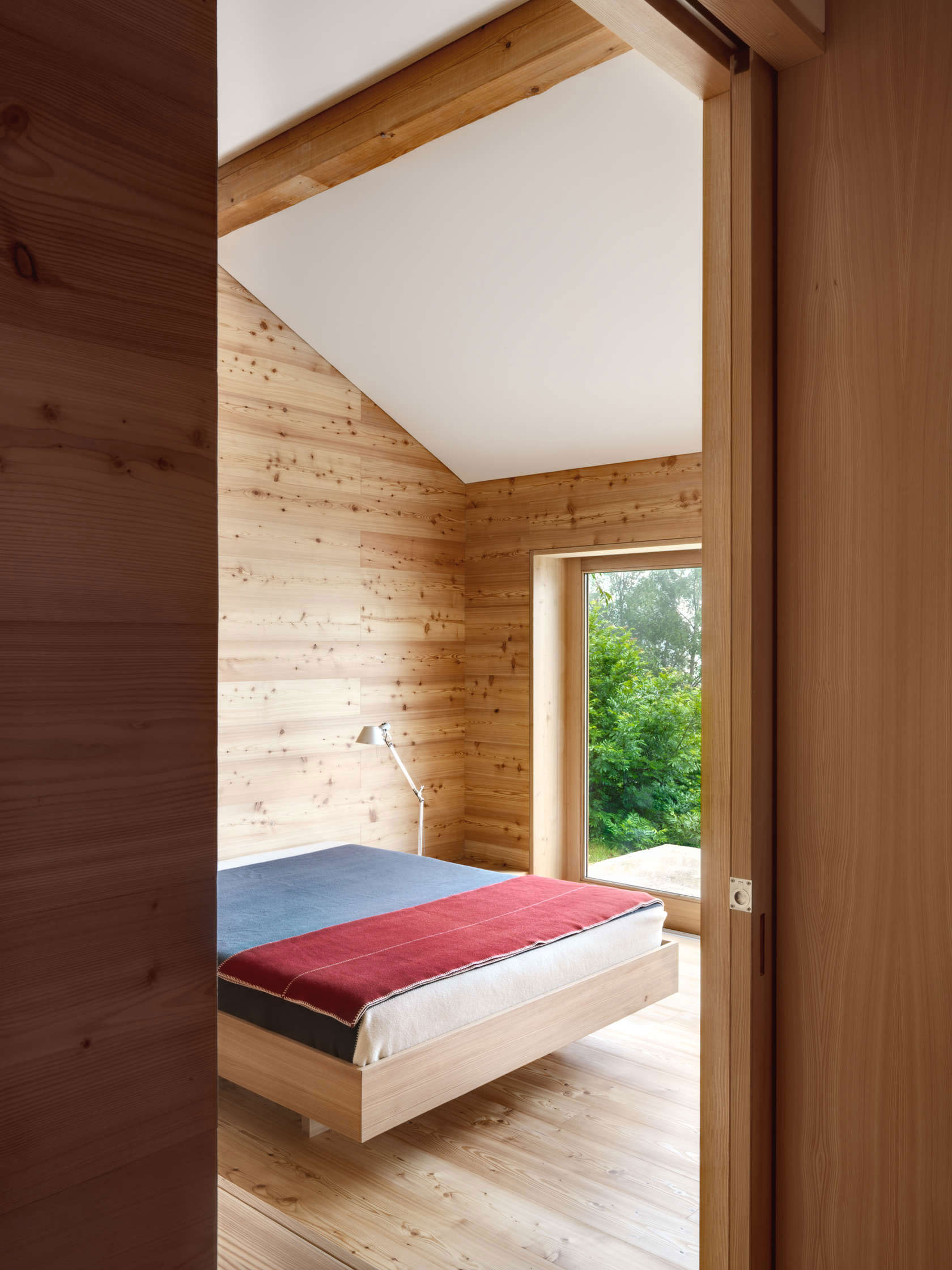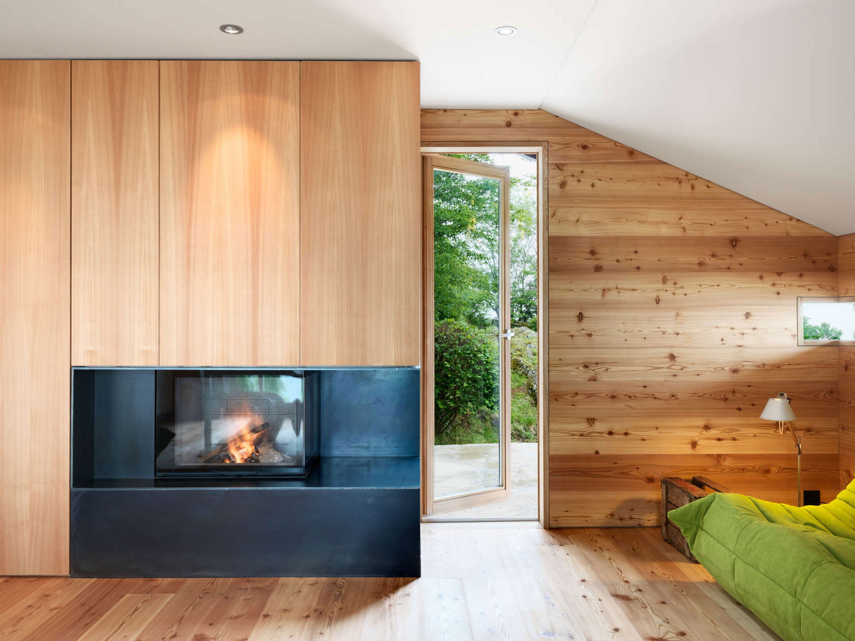 Chatka s podlahovou plochou 60 m² vznikla zo staršej chaty, ktorá potrebovala rekonštrukciu. Vzhľadom na prísne pravidlá lokálnej výstavby stavebná komisia rozhodla, že chatka nesmie byť exteriérovo pozmenená, aby nenarúšala okolitú výstavbu. Architekti spolu s majiteľmi sa teda rozhodli šalamúnsky – chatku zateplili zvnútra a týmto krokom určili celý charakter stavby. Do pôvodnej stavby sa rozhodli „vložiť“ drevený box, čím vyriešili nielen otázku tepelnej izolácie, ale aj otázku smerovania rekonštrukcie interiéru. Smrekovcové drevo vládne celému vnútrajšku, dokonca aj na mieru robenému nábytku, ktorý vhodne dopĺňa pomerne malý priestor bez toho, aby ho nadbytočne zahltil.