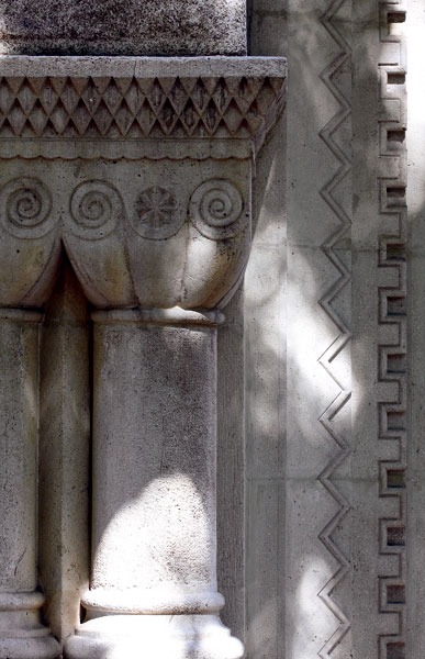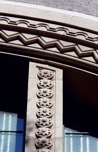 Navyše, ako mladý, začínajúci architekt by sa asi ťažko presadil v súťaži konzervatívnym projektom. Nevieme síce, ako a prečo ho inšpirovala chicagská škola, ktorá najmä v diele F. L. Wrighta žila ďalej, ale faktom je, že riešenie hlavnej fasády má viaceré typické znaky chicagskej školy. Asymetrická veža, ornament aj celkové riešenie hlavnej fasády.