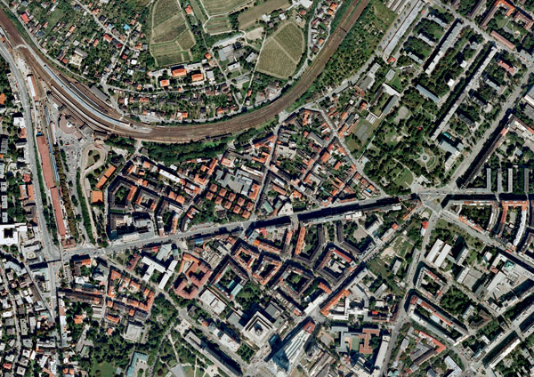 Ortofotomapa Bratislavy s vyznačením domov Zehnhaus na Palárikovej ulici