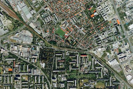 Ortofotomapa s vyznačením Masarykovej kolónie v Trnávke v Bratislave