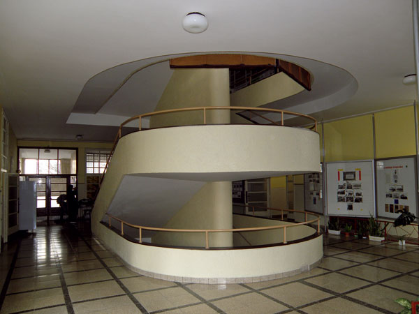 Architektúra budovy s valbovými strechami, ktoré potláčajú jej funkcionalistický charakter, s veľkými zasklenými plochami okien, s kvalitnou dispozíciou, riešením tried s bilaterálnym osvetlením aj vďaka svojej čistote a jednoduchosti nadväzuje na najlepšie Benšove diela. Symetrické usporiadanie čelnej fasády je odrazom hmotovej kompozície dvoch hlavných hmôt v tvare písmena T, pričom ustupujúca hmota je mierne zakrivená. Škola má centrálnu prestávkovú halu, ktorú ozvláštňuje železobetónové schodisko v ťažisku s veľkými polkruhovými podestami. Pôvodne bolo pod zadným traktom príjemné prestávkové respírium, ktoré, žiaľ, bolo neskôr zastavané. Súčasťou veľkoryso koncipovaného areálu bol okrem záhrady aj rodinný dom riaditeľa školy.