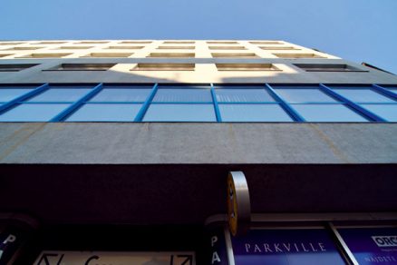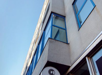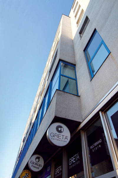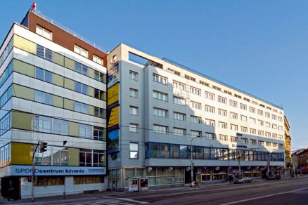 Ošarpanú a opadanú omietku nahradili v období socializmu plechovým obkladom Hunter-Douglas a na chvíľu z nej spravili elegantnú bielu budovu.