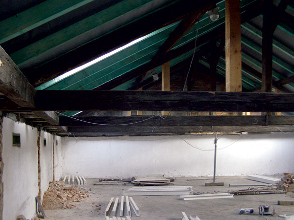Nosná železobetónová konštrukcia kúpaliska s obvodovými múrmi z tehál má elegantné jednoduché funkcionalistické formy, tak ako aj osobitý, dnes už, žiaľ, prestavaný obchodný dom Ignáca Rotha v centre mesta. V kontraste k týmto progresívnym realizáciám konštrukciu budovy skladiska – mestskej sýpky architekt riešil tradičným spôsobom. Obvodové múry sú zo zmiešaného muriva (tehla a kameň). Nosný systém prízemia, poschodia a podkrovia tvorí drevená konštrukcia (stĺpy, pásiky, prievlaky a stropné trámy), ktorá člení priestor na 11 polí v priečnom a 4 polia v pozdĺžnom smere. Trámovú stropnú konštrukciu nesie priečny systém mohutných stĺpov cez prievlaky osadené na podložkách v šírke pásikov, ktoré vytvárajú štyri polia drevenej nosnej konštrukcie. Drevené stropy majú dvojitý drevený záklop. Konštrukciu krovu tvorila komplikovaná sústava krokiev, vešadiel a ťahadiel zastrešujúcich 12-metrové rozpätie.