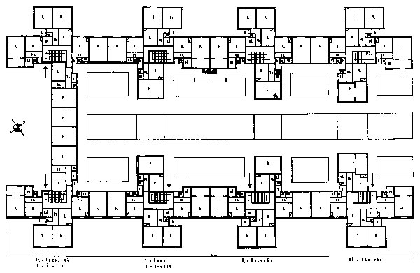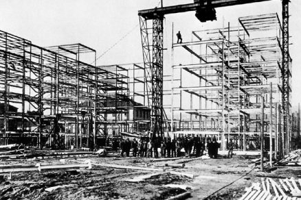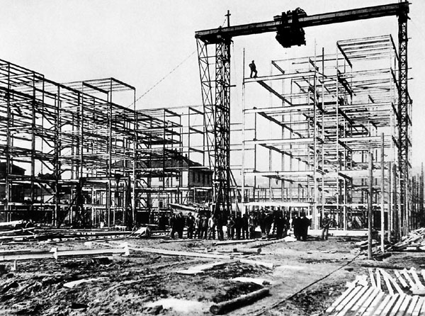Pôdorys   Oceľový skelet súboru vo výstavbe