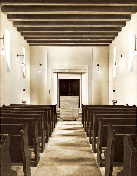 Centrálny priestor je vysoký 17,6 m. Kopula bola zvnútra ozdobená terakotou a zlatou farbou, pričom bola aj nasvietená. Pôvodný interiér (lavice, dvere, okná) bol modrej farby.