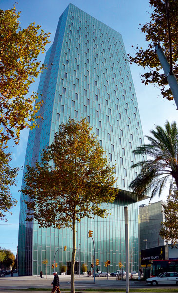 Budova je v porovnaní s inými výškovými objektmi veľmi štíhla a dynamická, z istých pohľadov pôsobí ako metalická ihla, iskrivo dominujúca svojej časti barcelonskej oblohy. Projekt, po vzore svojho suseda Torre Agbar, počítal aj s nočným nasvietením hotela (modrým, zeleným a červeným). Pôsobil by ako urbánna lampa – žiarivý symbol Diagonalu. Zatiaľ však budova využíva len štandardné osvetlenie izieb, čím odráža obsadenosť hotela.