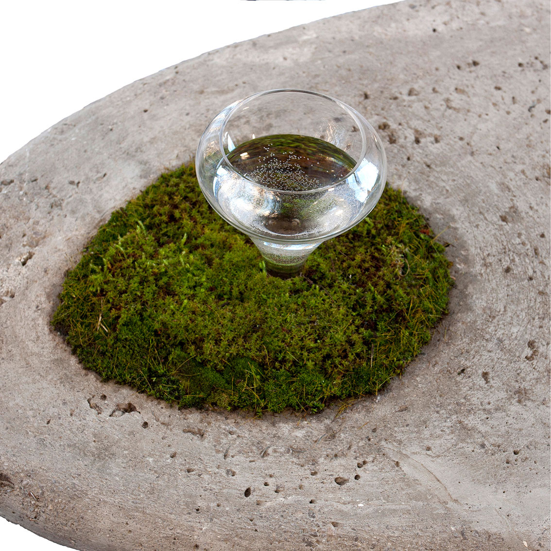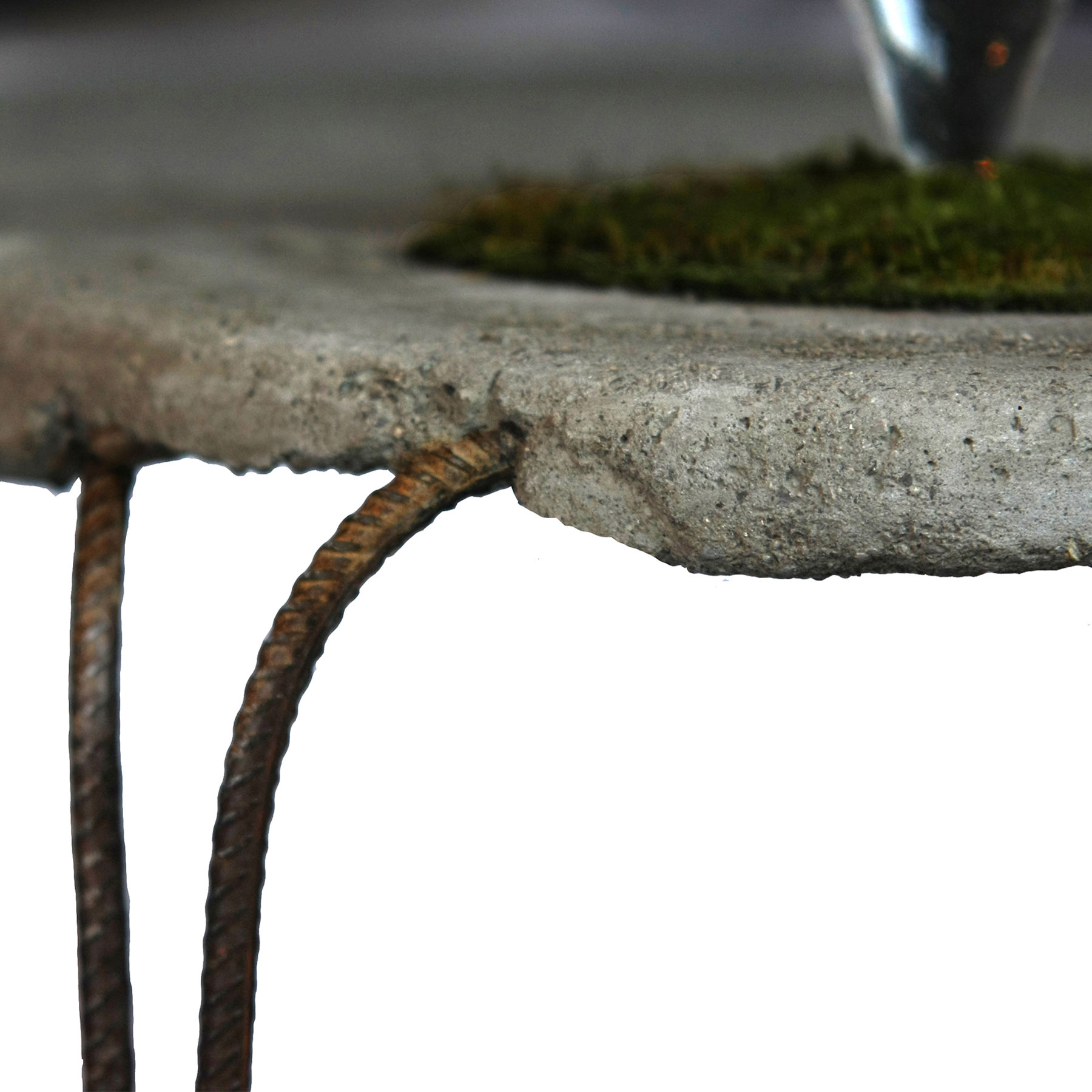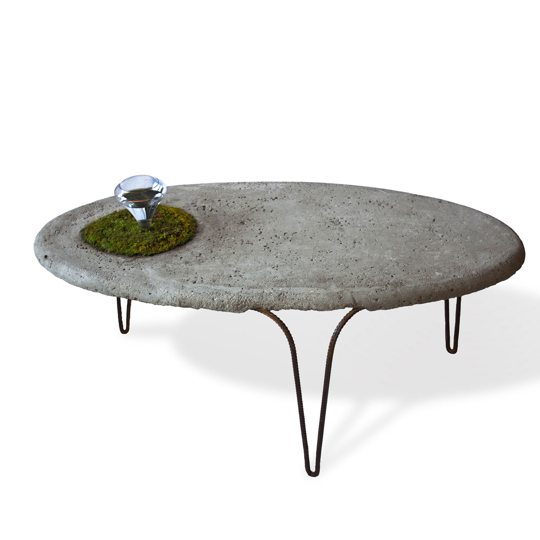 Stolár vytvoril androgýnny objekt, ktorý symbolizuje komunikáciu medzi mužom a ženou. Konštrukcia stolíka totiž spája mužský a ženský princíp spôsobom kombinovania mäkkých eliptických foriem so surovosťou pôvodných stavebných – outdoorových a prírodných materiálov, ako aj hotových predmetov. Mach a sklenený dekandér, ktoré sa nachádzajú v jednom ohnisku elipsy stolíka, sú navzájom unikátne prepojené – dekandér slúži na jeho zavlažovanie.