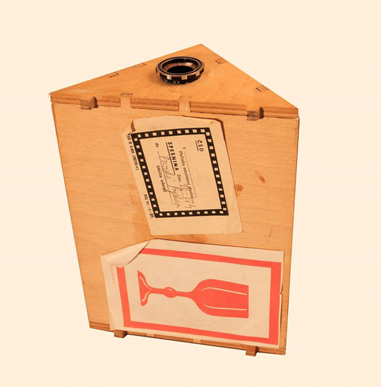 Materiál: drevo, zrkadlo, nájdené predmety. Rozmer 40 x 15 x 15 cm, nachádza sa v súkromnej zbierke.