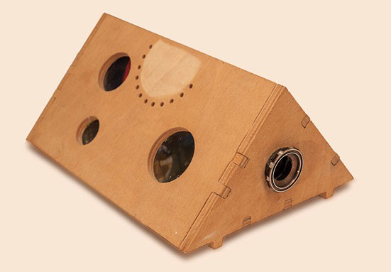 Kaleidoskop vyrobený z nájdenej obalovej preglejky, vnútri ktorej je za hrsť vecičiek, ktoré v živote stretla.