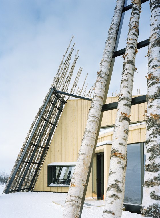 Možno vám názov tejto švédskej obce nič nehovorí, ale tento rezort je významný pre bežecké lyžovanie, dokonca tu trénuje švédsky národný tím. Bežkári sa môžu posilniť a zahriať v reštaurácii Tusen. Architekti z kancelárie Murman arkitekter si zvolili drevenú montovanú konštrukciu – ľahkú, ekologickú a rýchlo postaviteľnú. Pred náporom snehu ju chránia kmene briez.