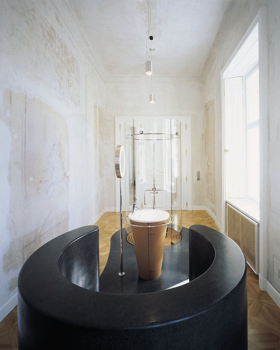 Úložné priestory vyžadovali špeciálny tvorivý prístup. Na jednej strane nebolo žiaduce, aby úložné priestory chýbali. No na strane druhej, vychádzajúc z centrálneho konceptu, by sa nábytok na odkladanie nechcene stal dominantou uprostred miestnosti, spolu so sanitárnym zariadením.