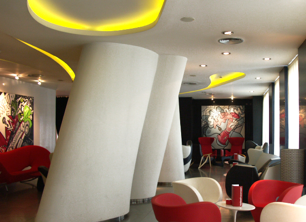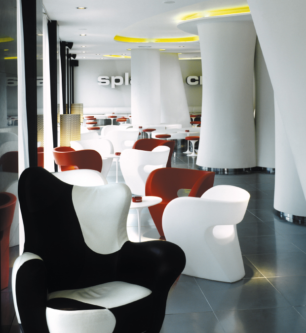 Týmito prvkami sa nechali inšpirovať aj dizajnéri z Estudio Mariscal pri zariaďovaní interiéru španielskeho baru Splash & Crash. Celý priestor je navrhnutý tak, aby návštevníci mohli vyjadriť slobodne svoj názor popíjajúc dobrý drink a užívajúc si nočnú atmosféru. Cieľom bolo zároveň vytvoriť moderný priestor na stretnutia starých známych či nadviazanie nových priateľstiev.