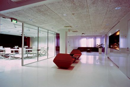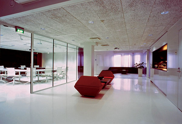 V týchto helsinských interiéroch právnickej firmy až magicky dominuje svetlo filtrované závesmi a odrážané laminovanými povrchmi a liatymi podlahami. Zóny s rôznymi funkciami sú tu na rozdiel od londýnskeho príkladu zjednotené. Prostredie neodráža ruch centra Kamppi. Naopak, dištancuje sa od neho. K spomaleniu rytmu prispievajú horizontálne línie a masívne prvky, akým je napr. obrovský recepčný pult evokujúci tvary športovej jachty.