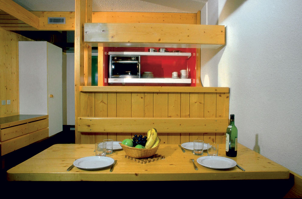 Pre rezidencie Archeboc, Cascade, Chantel Haut, Les Belles Chalettes, La Nova a Mirantis vytvorila interiér. Dala prednosť mezonetovým bytom. Navrhla štúdiá rôznej veľkosti s integrovanou kuchyňou, ktorá umožnila žene zostať aj počas prípravy pokrmu uprostred rodiny. Nábytkové zariadenie bolo v duchu jej filozofie uchopené veľmi funkčne a jednoducho. Revolučným činom bolo uplatnenie prefabrikovanej kúpeľne z dvoch plastových škrupín. Ich montáž vo vysokohorskom alpskom prostredí bola totiž šetrnejšia než klasické technológie. Realizácia Les Arcs trvala takmer 20 rokov.