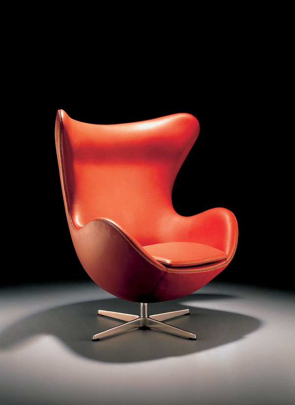 Arne Jacobsen, Egg, 1958.Vzhľadom na mimoriadne náročnú výrobu kožený variant okrem exkluzívnej special edition zhotovili len pre Jacobsenov kodanský hotel. Foto: Fritz Hansen |