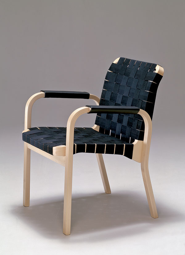 | Alvar Aalto, Chair 45, 1946 – 1947. Tvar stoličky je abstrakciou bez náznakov bežných u dánskych súčasníkov, organický prvok je iba v decentnej krivke. Foto: Artek |