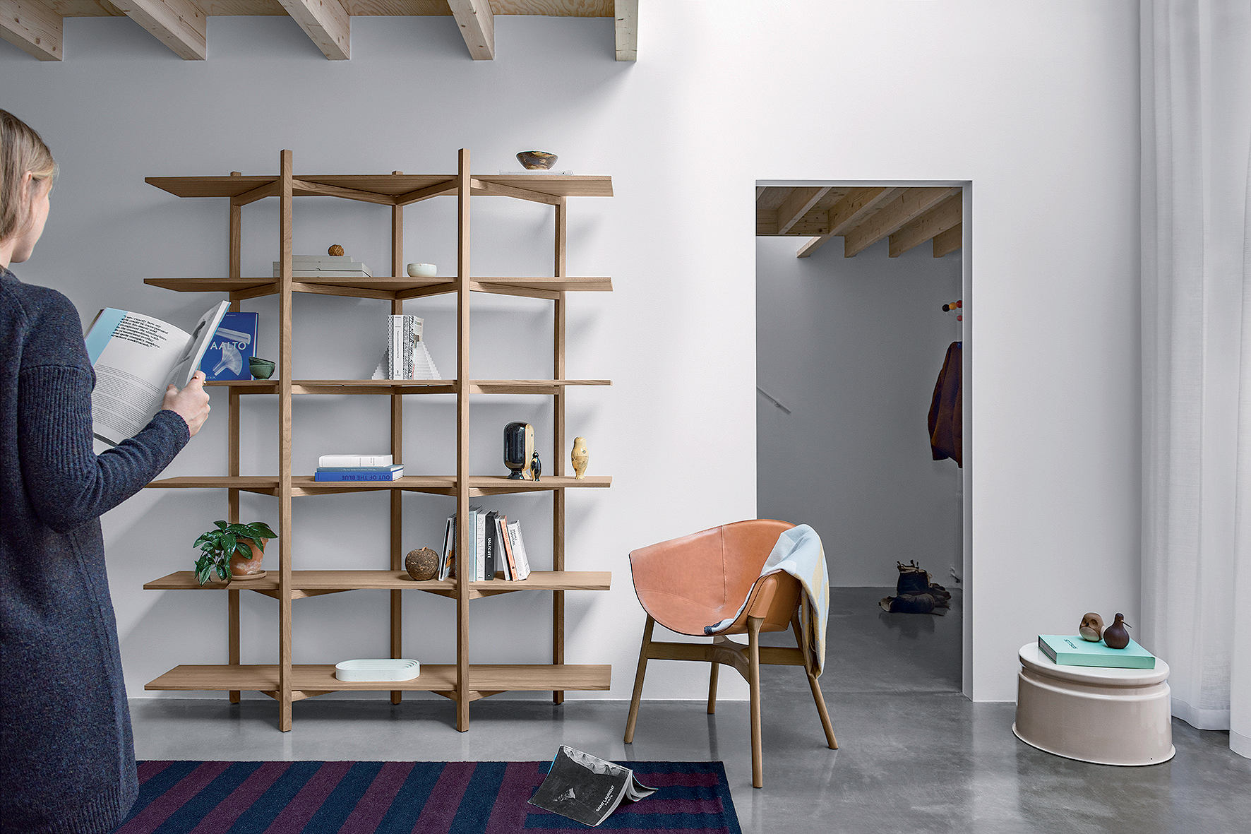 Policový systém Zig Zag pre švédsku firmu HEM – polica sa predáva celosvetovo ako flat pack, dá sa rozložiť za minútu bez použitia náradia alebo skrutiek.