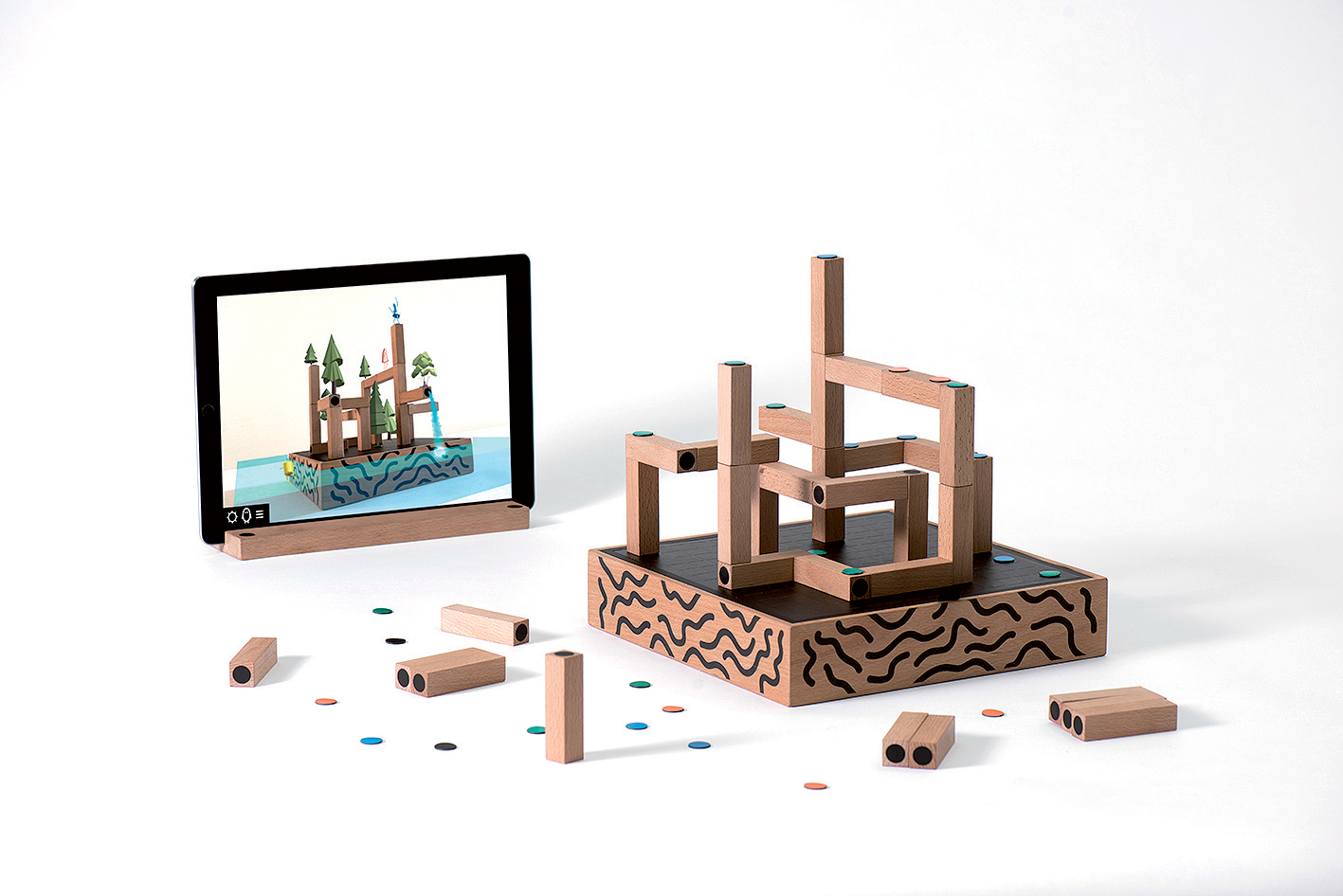 Koncept interaktívnej hry Koski – spojenie digitálneho sveta hier s tradičnými stolovými hrami. Hráč ovláda hru na displeji inteligentného zariadenia pomocou fyzických blokov.