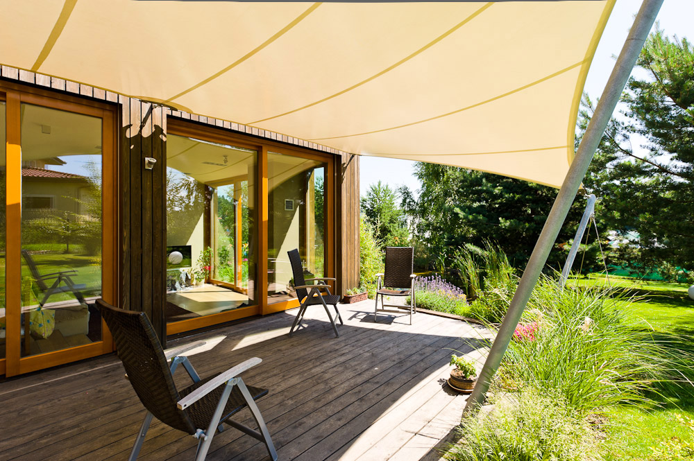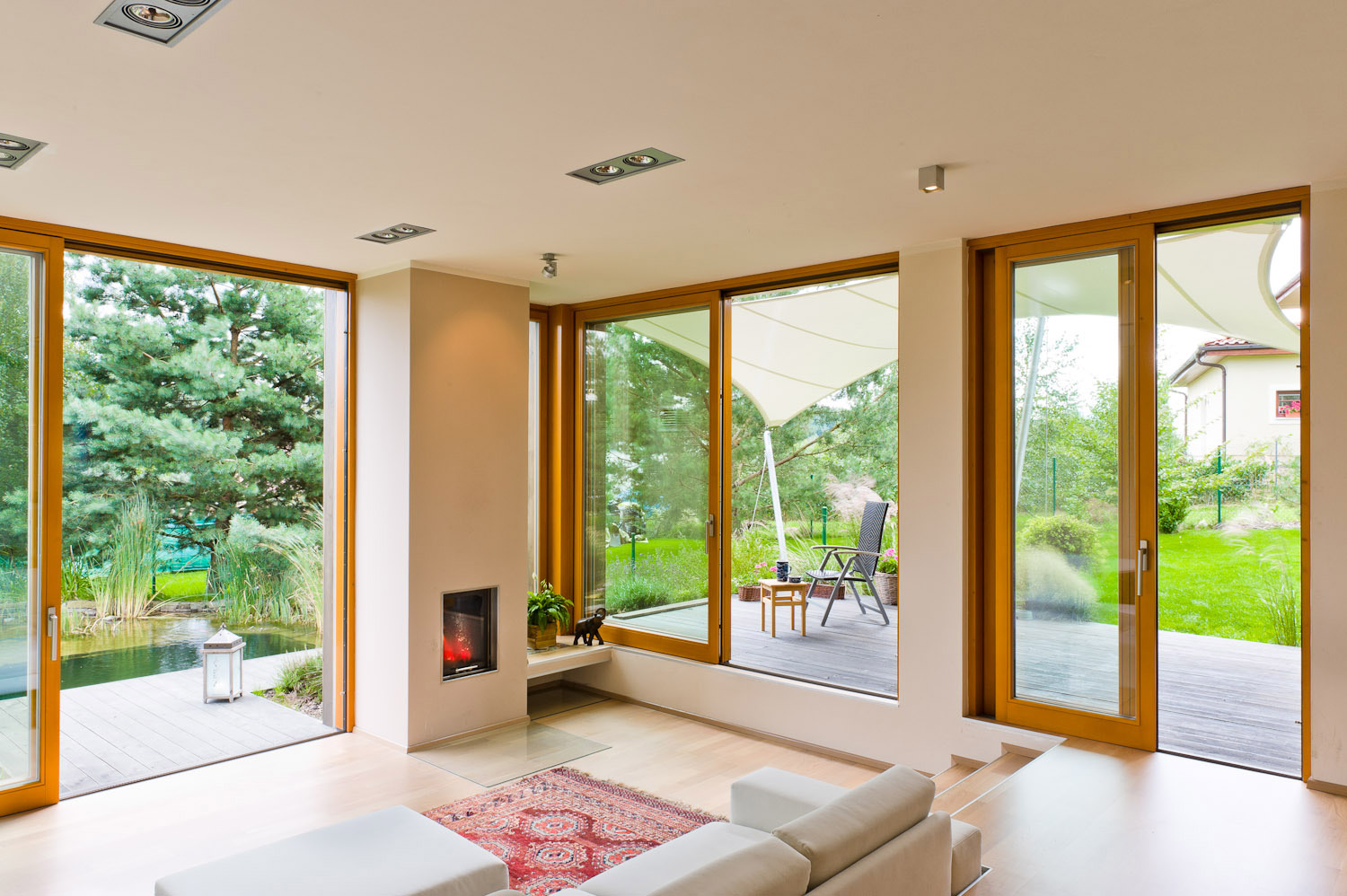 Všetky hlavné obytné miestnosti domu sú rovnako ako dom samotný orientované na juh a juhozápad. Ide o svetové strany s najlepšími výhľadmi do okolitého prírodného prostredia. Vďaka umiestneniu a zaskleniu obývacej miestnosti aj terasy na prízemí i na poschodí sa prírodné dominanty – údolie obklopené zelenými kopcami – stali prirodzenou súčasťou domu.