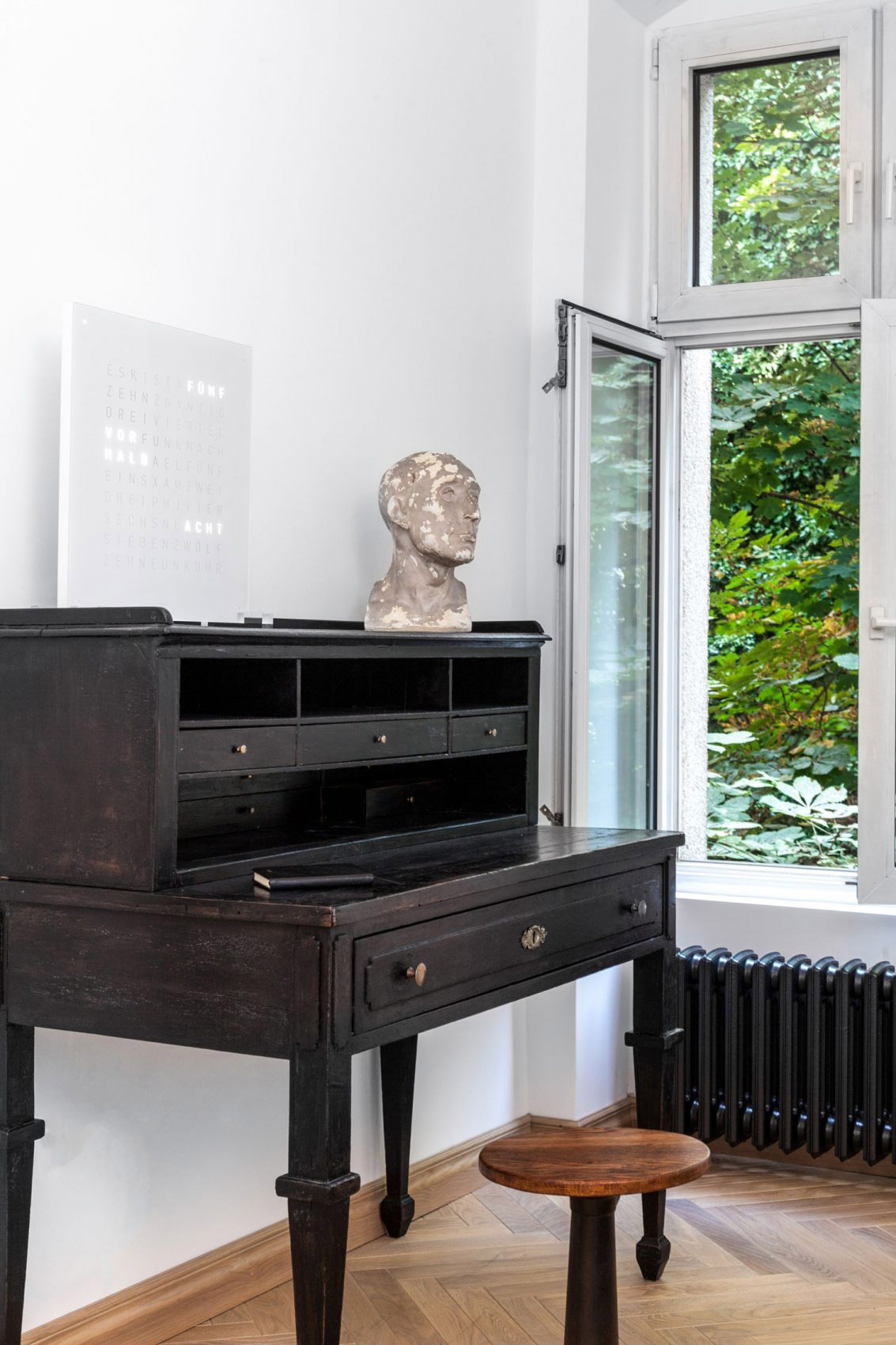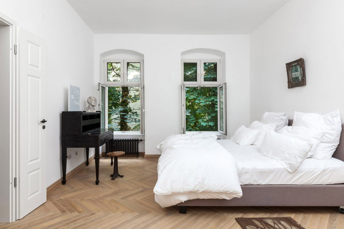 Starosvetskú atmosféru pôvodnej podoby bytu pripomínajú vysoké okná a liatinové radiátory.