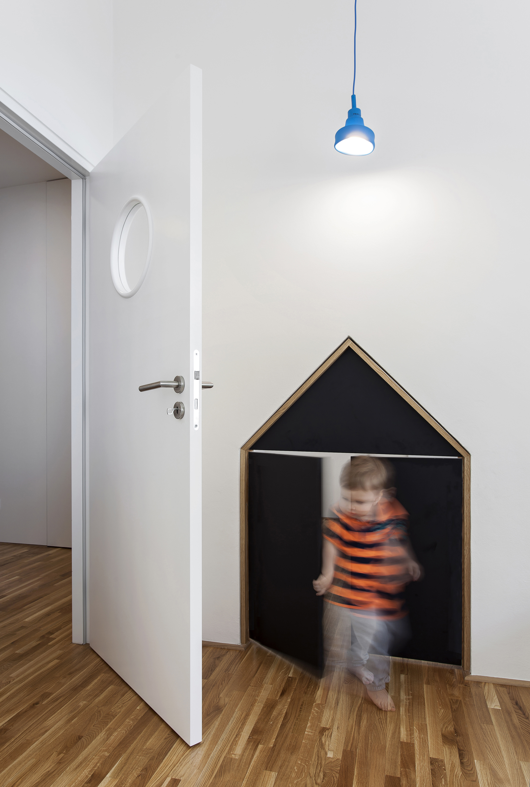 Temné chodby starých bytov sú v tomto prípade minulosťou. Celý interiér je presvetlený, a pritom nie je riešený ako otvorený, práve naopak – každému obyvateľovi poskytuje dostatok súkromia.