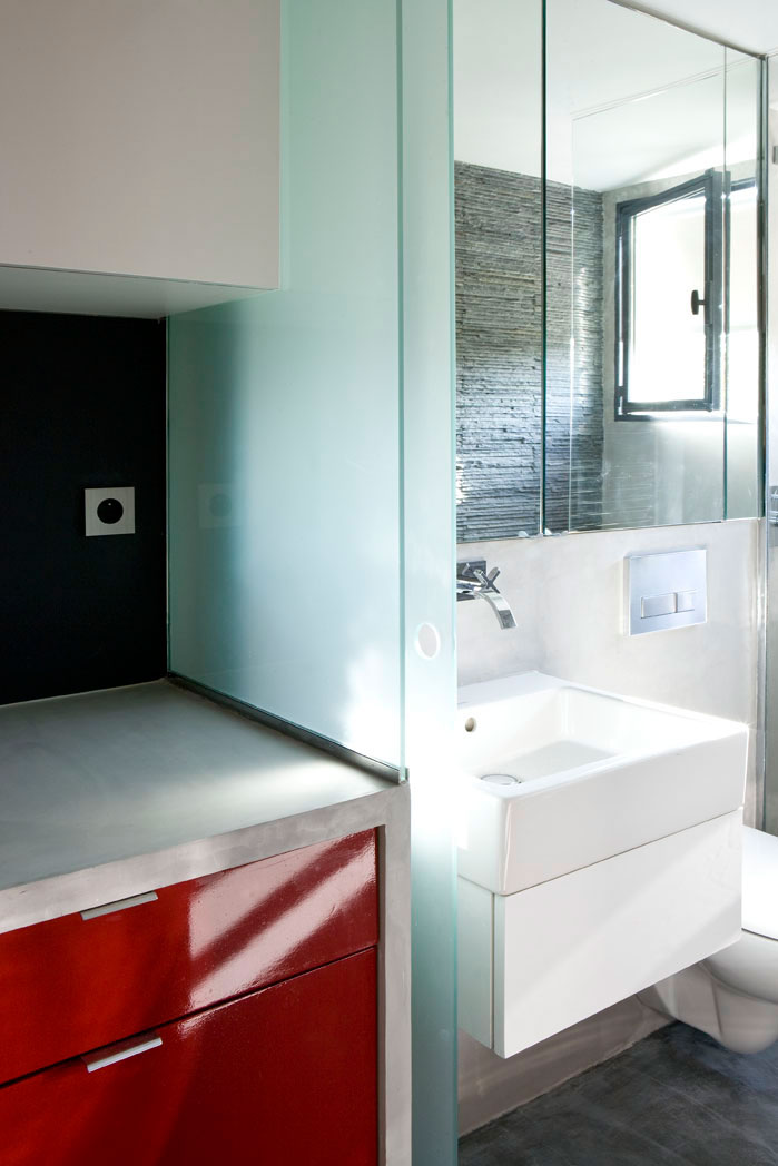 Tento malý byt v Paríži je plodom spolupráce architektov Marca Baillargeona a Julie Nabucet. Najnápadnejším rysom tohto projektu je jeho skromná rozloha – len 16 m². Geniálne interiérové riešenie tohto mikrobytu, ktorý vznikol z kúpeľne oveľa väčšieho príbytku, nejedného človeka úprimne šokuje a presvedčí, že nie každý malý priestor musí byť automaticky stiesnený a neobývateľný.