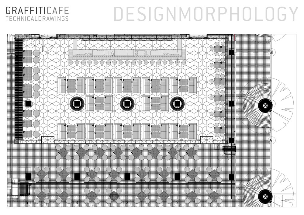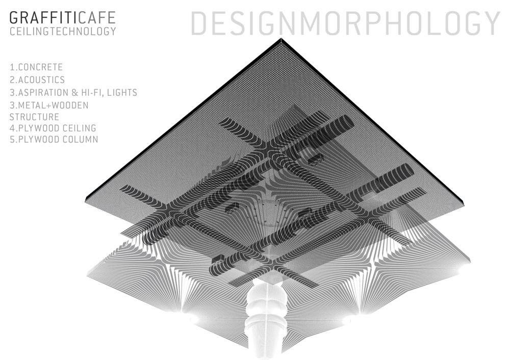 Interiér kaviarne sa nedá prehliadnuť ani z ulice, pretože sa otvára veľkoformátovými oknami do exteriéru. Je súčasťou galérie a hotela Graffit Gallery, ktoré sa nachádzajú kúsok od pobrežia Čierneho mora. Aj keď by sa podľa názvu dalo usudzovať, že hotel a kaviareň budú poňaté v akomsi street štýle plnom farieb, opak je pravdou. Interiér je decentný, s prevažujúcou bielou farbou a dreveným dizajnom. O silný grafický prvok sa nepostarali spreje, ale ohýbaná preglejka.
