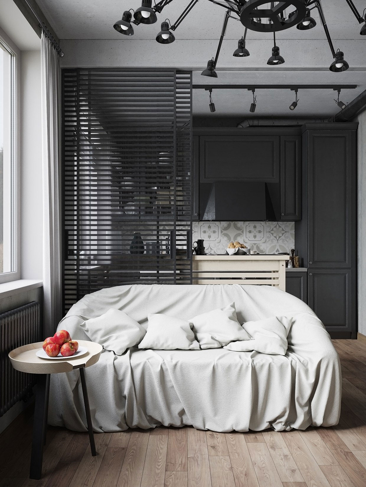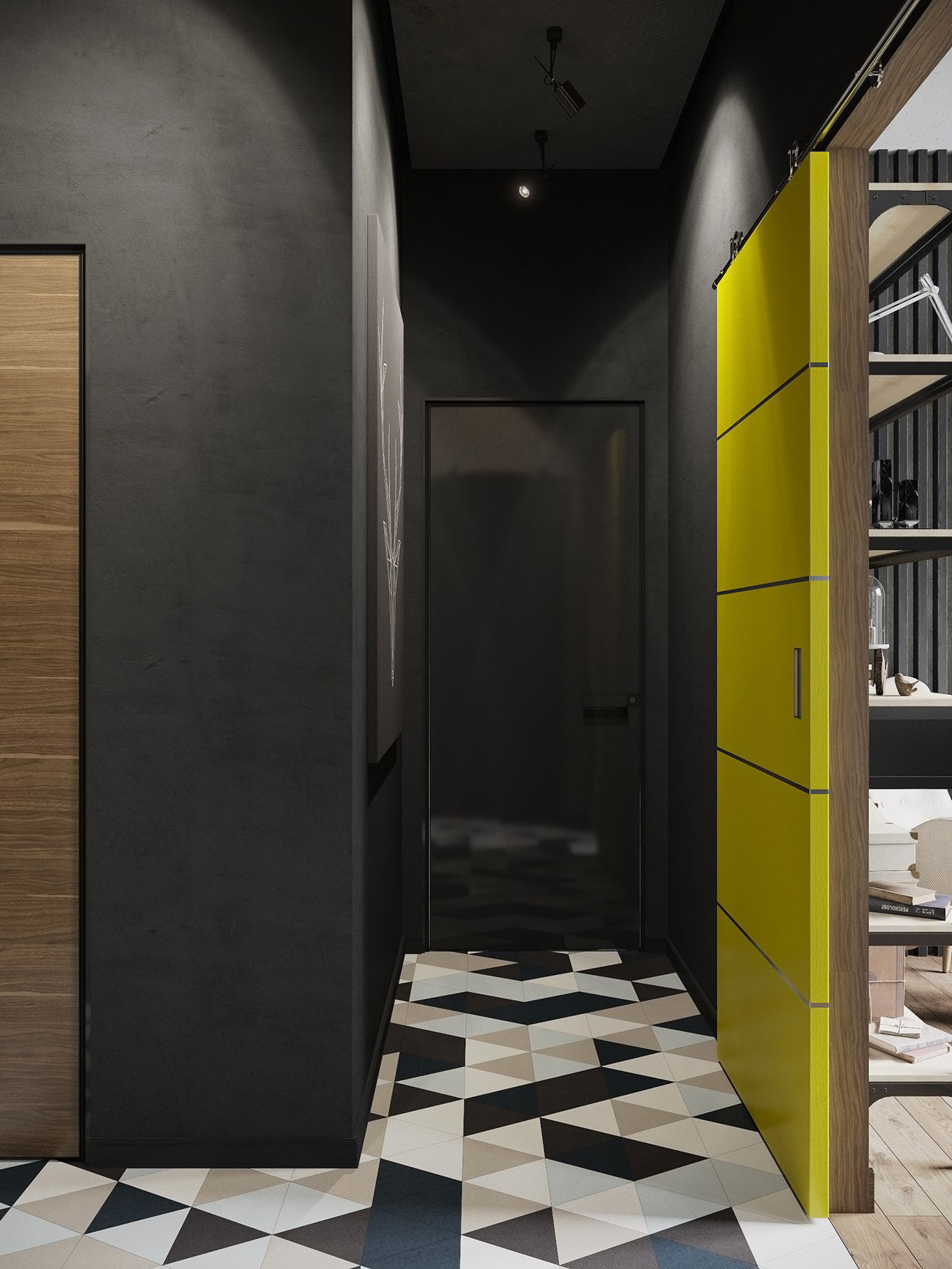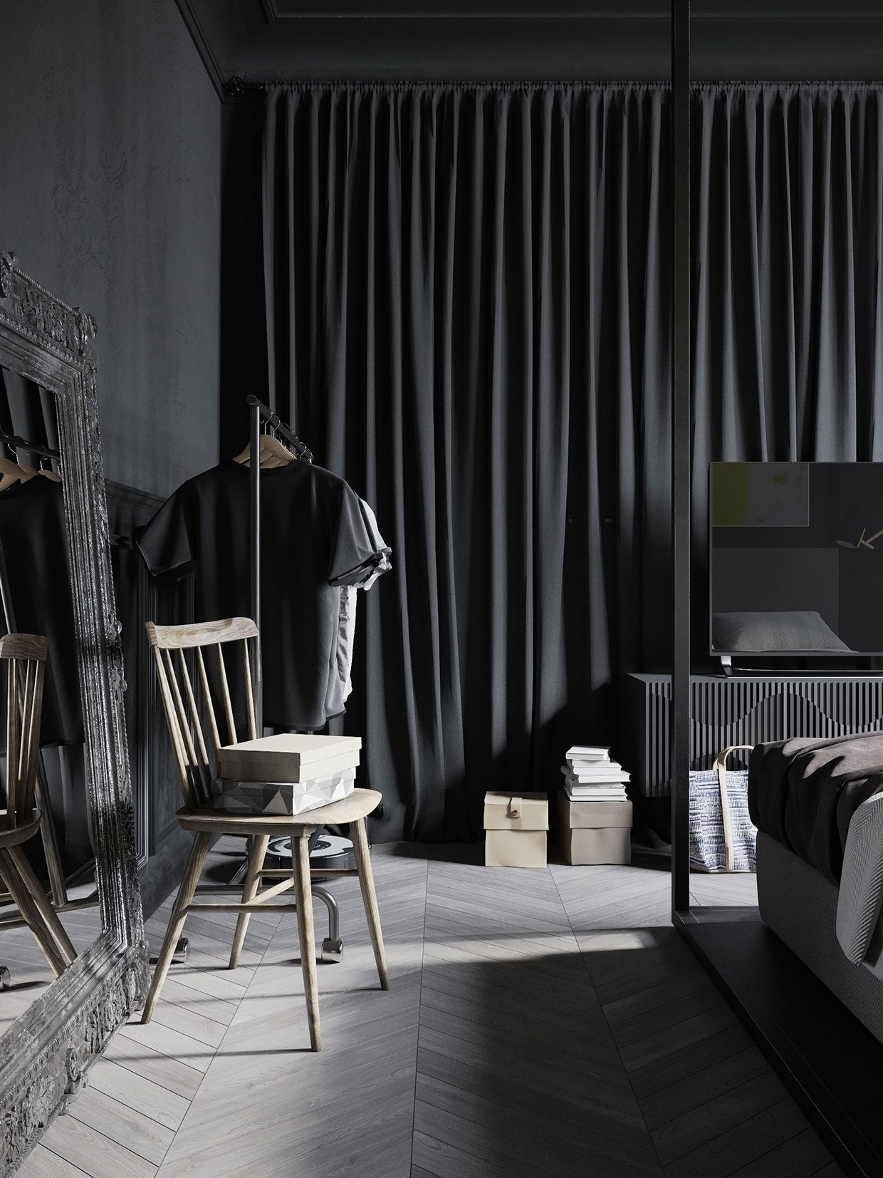 Ak má interíér odrážať vašu osobnosť, to, čo milujete, váš temperament, sny, záujmy a ambície, v tom prípade je odvážny interiér od dizajnéra Denisa Krasikova presne tou esenciou, ktorá dopĺňa obraz života dnešeného mladého človeka z konkrétneho mediálneho odvetvia. Tmavý, dramatický, perfektný pre každého, kto vie oceniť aktuálne trendy a výslovnu maskulínnosť priestoru.
