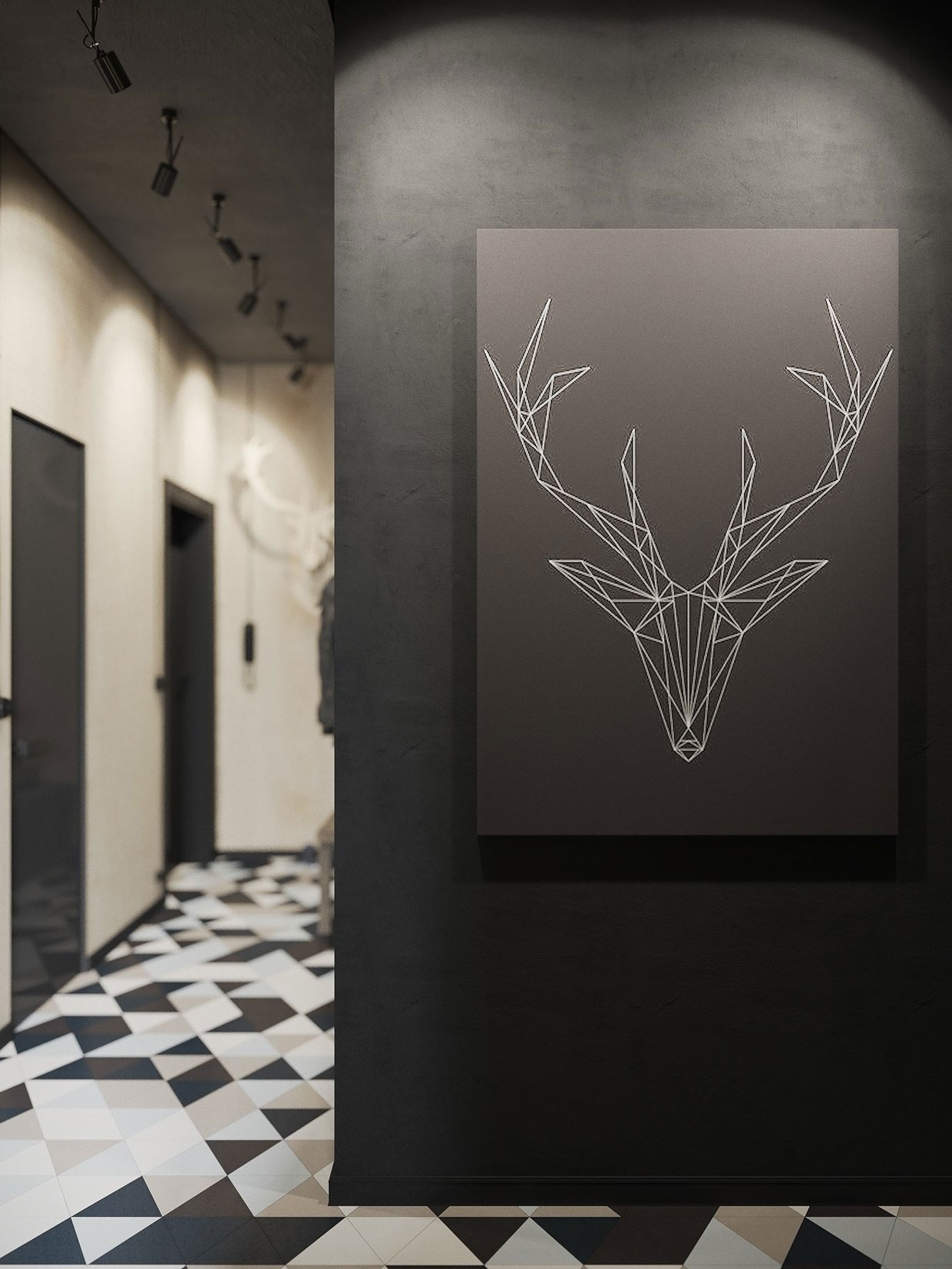 Byt je majstrovským spojením viacerých štýlov, pričom dizajnérovi sa podarilo zachovať kontinualitu priestoru a estetickú komplexnosť. Prvky, vzory a farby sa navzájom nebijú ani nerušia – práve naopak – výborne sa dopĺňajú. Hoci bytu dominuje paleta sivých odtieňov v spojení s industriálnym nádychom, nepôsobí fádne, smutne ani ponuro. Doplnky v štýle starého vidieka (kuchynské kachličky, sporák, jedálenský stôl) kráčajú ruka v ruke s dominujúcimi industriálnymi prvkami, vintage vzormi (kúpeľňa) či závanom škandinávskeho dizajnu (vstupná hala, sedačky, dekorácie).
