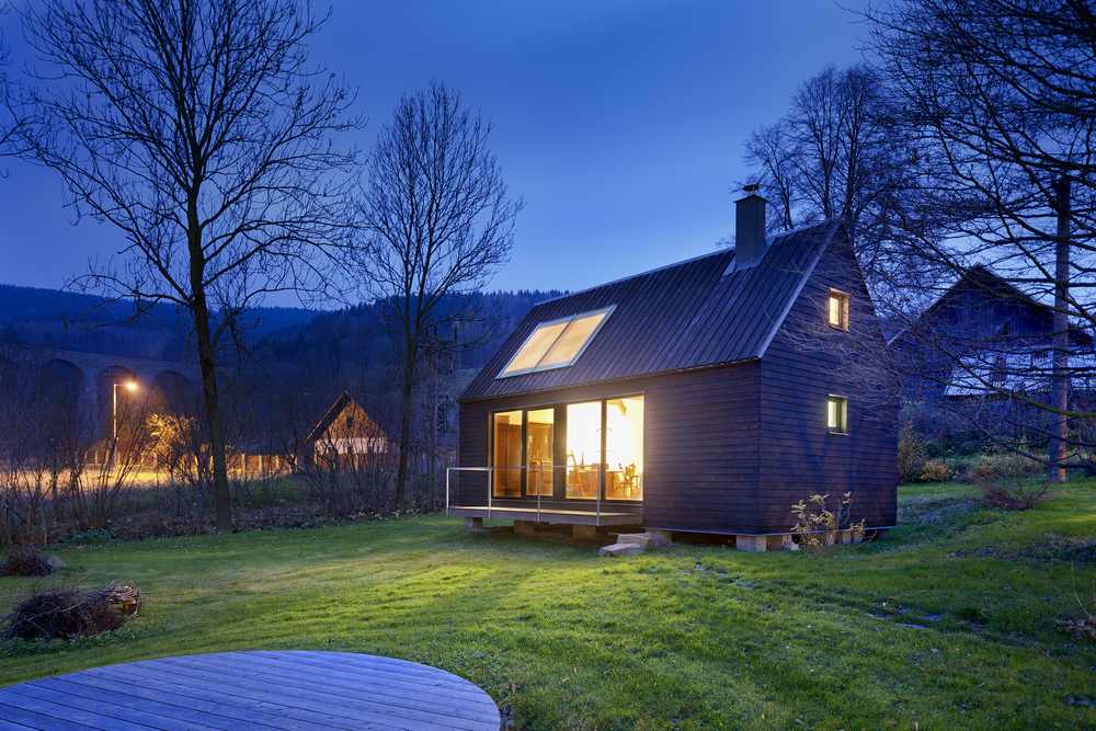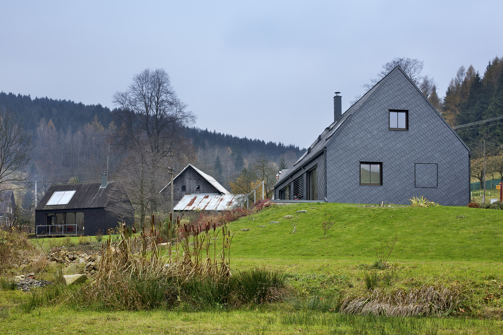 Do horskej oblasti Kryštofovho Údolia v okrese Liberec pomedzi chalupy a typické domčeky nie je možné postaviť hocijakú novostavbu. Potreba zapadnúť medzi domy, ktoré na tomto mieste stoja viac ako dve storočia, dala hlavný podnet k tvaru a forme nového domu manželov, ktorí sa rozhodli postaviť v pokojnom prostredí dom na trvalé bývanie.
