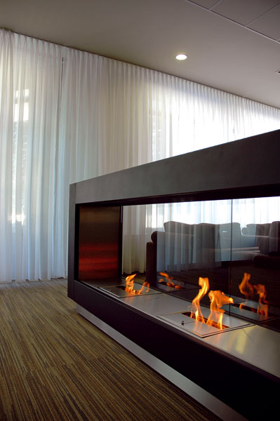 Prirodzenú potrebu výraznejších prírodných textúr, okrem kamenných a drevených plôch, sa architekti rozhodli naplniť kresbou nevšedných kobercových podláh, prípadne ju môžeme objaviť na originálnych drážkovaných čelách recepčného a barového pultu, ktoré svojou plasticitou evokujú kresbu erodovaného masívneho dreva.