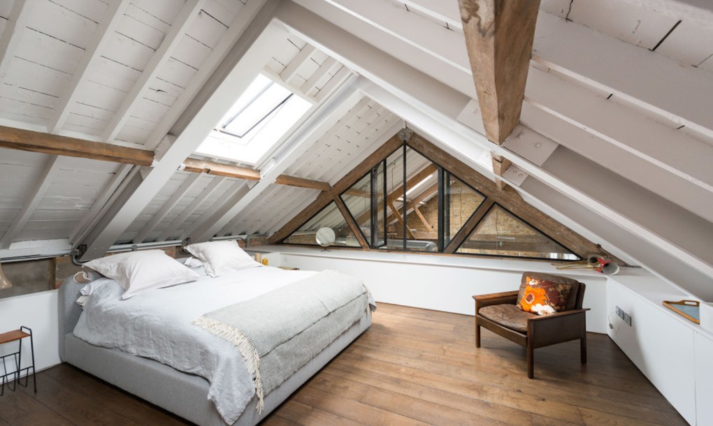 Bytové lofty bývajú vyhľadávaným artiklom najmä pre panoramatický výhľad, obzvlášť ak zasklenie zaberá polovicu zastrešenia ako v tomto prípade. Pri dlhšom užívaní však treba nutne riešiť otázku vykurovania a chladenia miestností.