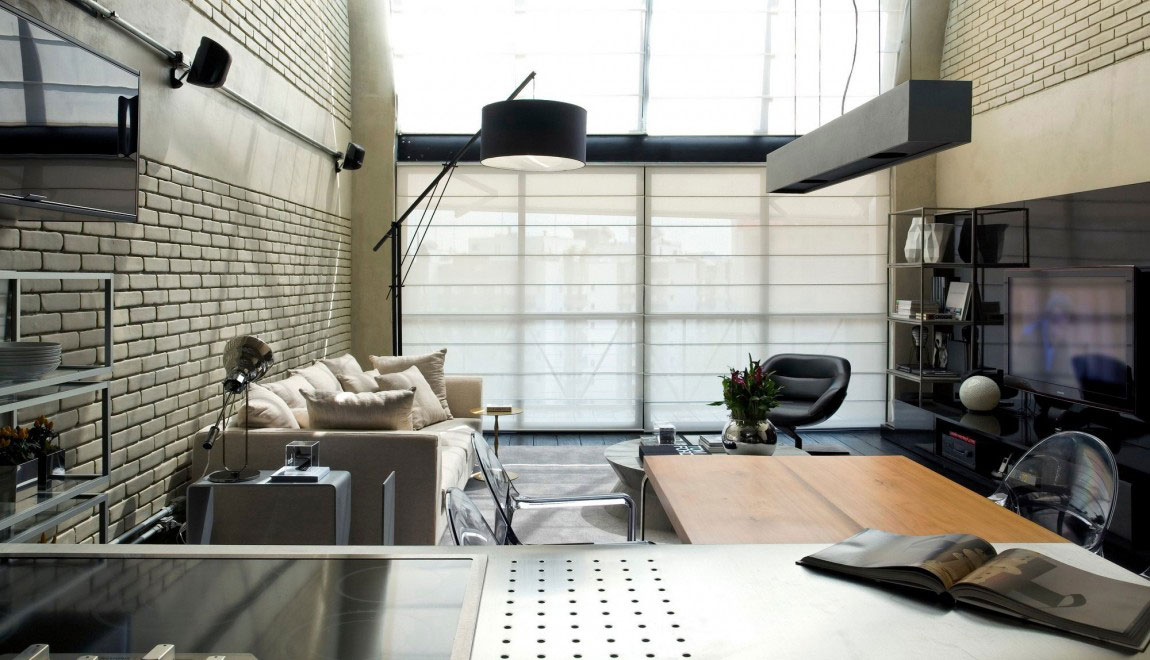 Loft nachádzajúci sa na rozlohe sto štvorcových metrov je šitý na mieru majiteľovi, ktorý žije sám. Vďaka povahe jeho životného štýlu si mohli dizajnéri dovoliť nechať priestor otvorený a kompaktný. Žiadna miestnosť nie je striktne oddelená, dokonca aj kúpeľňa je spojená so spálňou. Výsledkom je ideálne spojenie komfortu a moderného vzhľadu, ktorého esenciou je industriálny ráz.