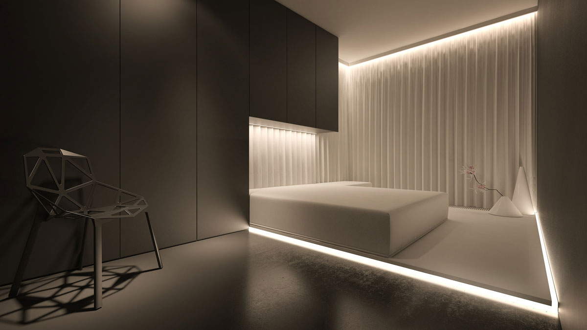 V jeho interiéroch nikdy nenájdete „zbytočné“ dekorovanie či mnohoraké typy štruktúr, povrchov, farebných škál alebo doplnkov. Najsilnejším nástrojom je v jeho prípade svetlo a majstrovské narábanie s rôznymi – väčšinou nepriamymi, skrytými a doplnkovými – svetelnými zdrojmi. Aj tu sa však autor takpovediac drží pri zemi – každý zdroj svetla je opodstatnený, plniaci určitú funkciu a stvárnený v takej podobe, ktorá je praktická a nenarúša celkovú vizuálnu čistotu priestoru.