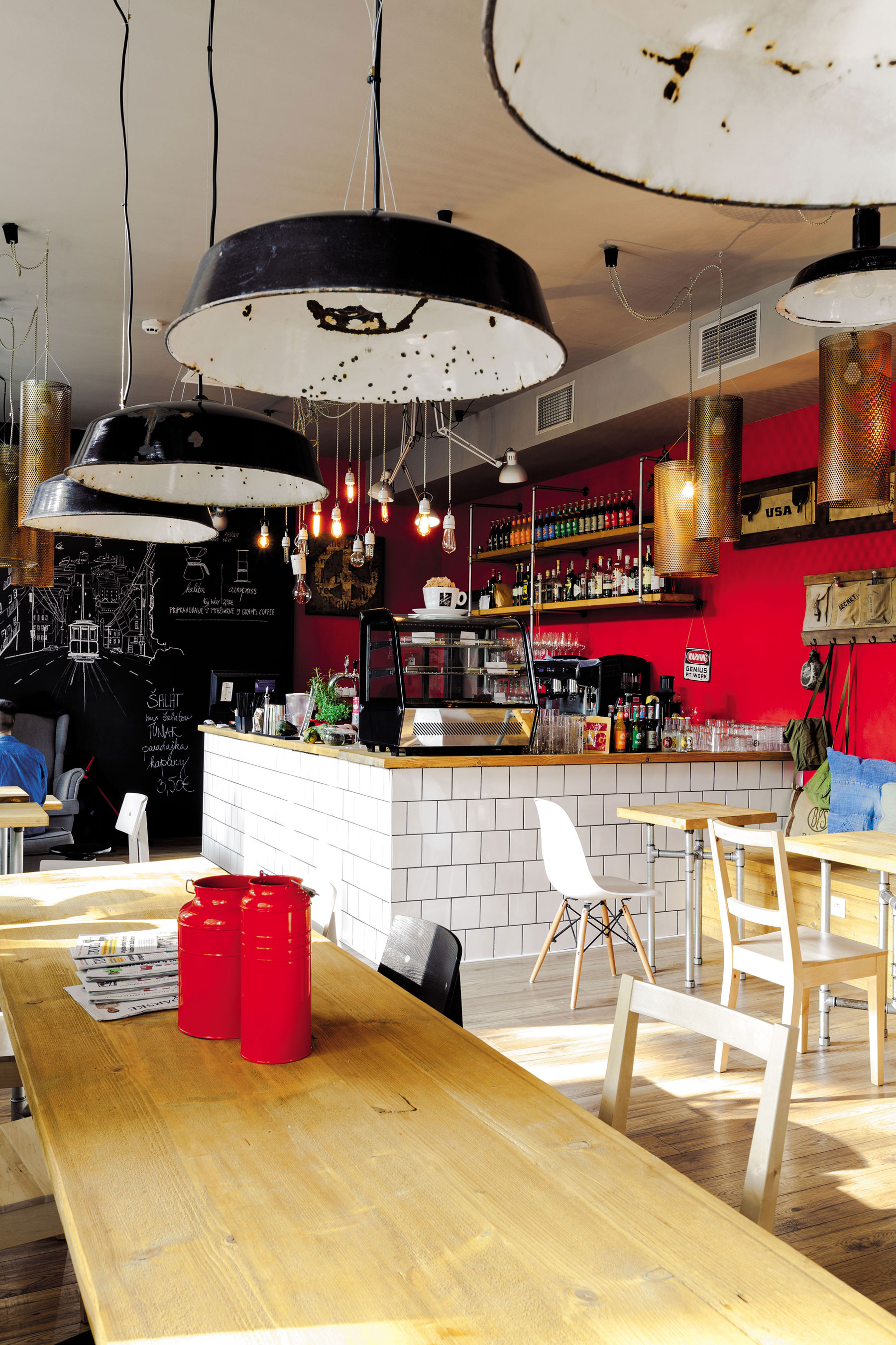 Ľahko nedbanlivý industriálny štýl interiéru je v kaviarňach veľmi populárny. Treba mať však dobre nastavený zmysel pre mieru. Tak ako vo W-café.