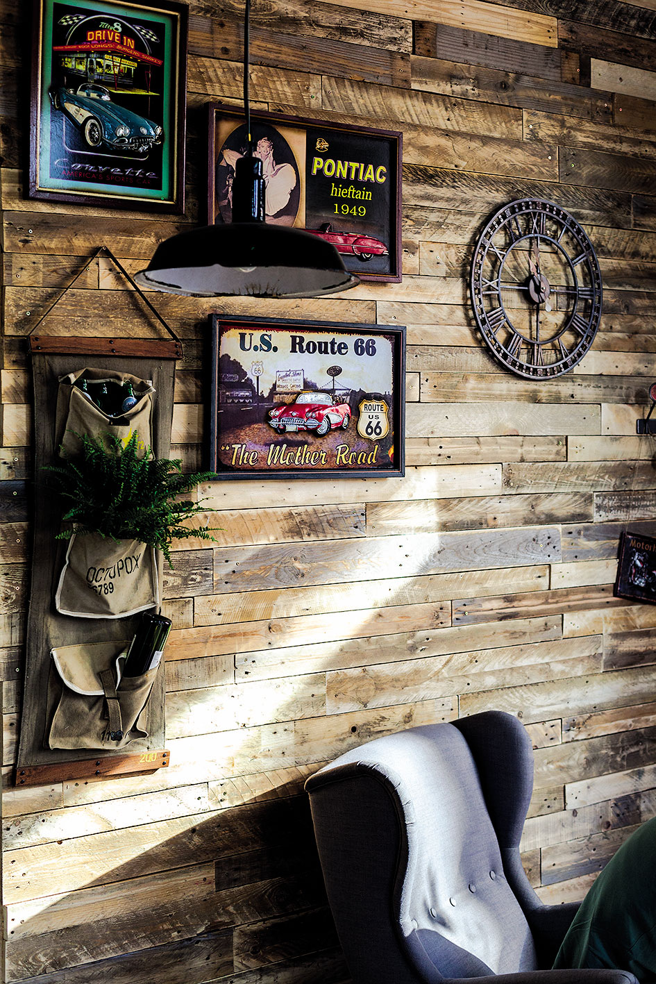 Interiérové doplnky sú tematicky ladené k americkej káve.