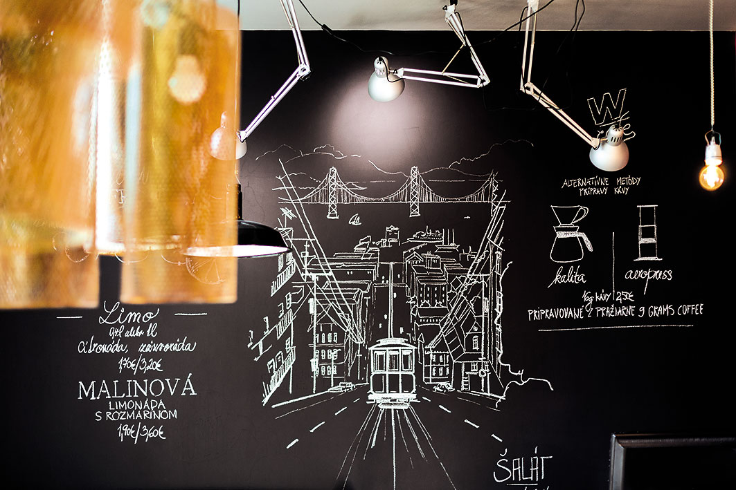 „Sme študenti záhradnej architektúry v Nitre,“ vysvetľuje Jozef Čillo. „Keďže sme sa chceli venovať aj W-café, trochu sme si rozložili štúdium, aby sme mali dosť času na bakalársku prácu aj prevádzku kaviarne.“ Ich štúdium nemá od dizajnu ďaleko a interiér, ktorý si kompletne navrhli a s pomocou priateľov sami zrealizovali, je toho jasným dôkazom. „Na premenu prázdneho priestoru na kaviareň sme od podpísania zmluvy po plánované otvorenie mali presne mesiac. Hneď sme sa pustili do práce a celý interiér sme zrealizovali za dva týždne,“ so skromným úsmevom dodáva Jozef Čillo.