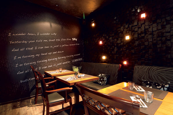 Citrónovník je leitmotívom celého prízemia. Názov korešponduje so žltozlatou plastikou stromu, ktorá svieti na mozaikovom podklade za barom a lemuje pozdĺžnu stenu. Pri výklade do ulice sa týči živý mini citrónovník, maskot baru, a štvoritú citronádu uzatvára obraz v zadnej časti baru a text piesne Lemontree od skupiny Fools Garden. Podľa slov manažéra reštaurácie je citrónovník symbolom pozitívnej energie, evokuje niečo čerstvé a príjemné. „Vo všetkých troch priestoroch sa hosť môže najesť, pričom na výber má buď thajskú, alebo stredomorskú kuchyňu,“ dodáva. Thajskú kuchyňu zastrešuje šéfkuchár Tino Lotti, ktorý má 20-ročnú kulinársku prax priamo v Thajsku. Na jeho odporúčanie sú však jedlá prispôsobené a nie až také pikantné, aké ponúka originálna thajská kuchyňa. Stredomorská kuchyňa sa tu však nekončí iba pri špagetách a pizze, ako je to na Slovensku častým zvykom a omylom – jedálny lístok ponúka špeciality z rôznych štátov.